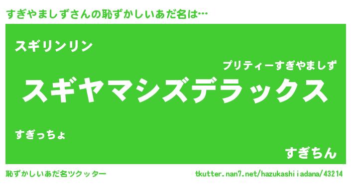 | ヘコむあだ名 | 『すぎっぺ』『すぎやましず(笑)』 |