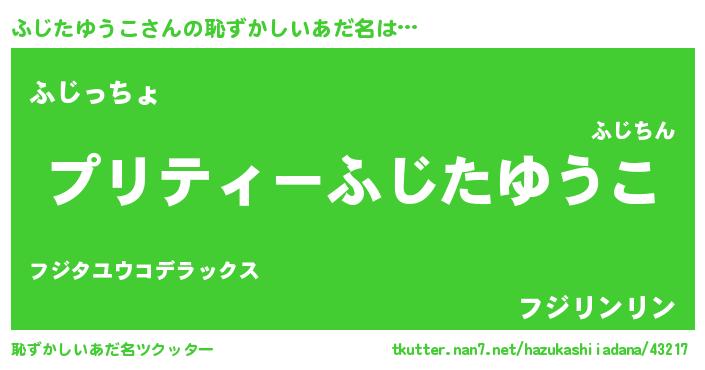 | 女子向けラノベタイトル風あだ名 | 『シンデレラふじたゆうこ家の靴箱館』 |