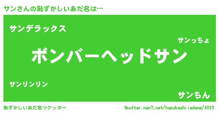 | ヘコむあだ名 | 『サン(苦笑)』『豆乳』『サンっぺ』 |