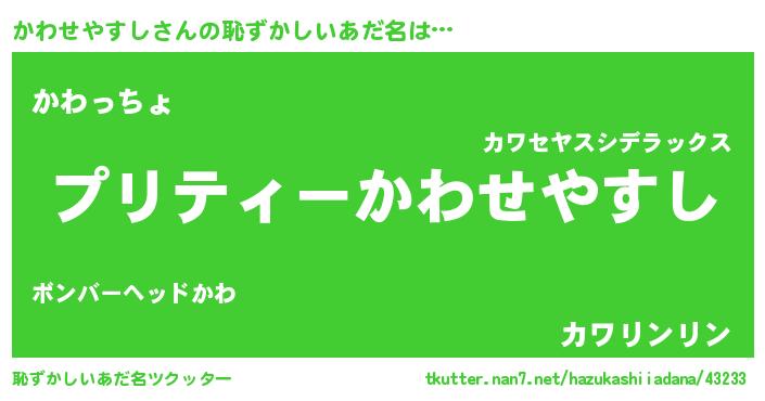| ヒーロー風カッコイイあだ名 | 『スーパーカワセヤスシ』『仮面カワダー』 |