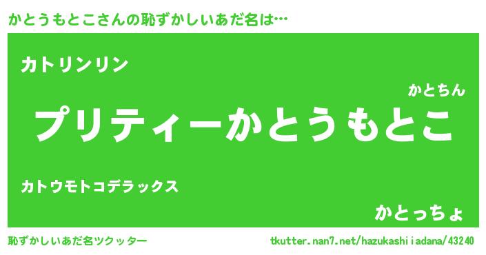 | ヒーロー風カッコイイあだ名 | 『スーパーカトウモトコ』『黄金騎士カト』 |