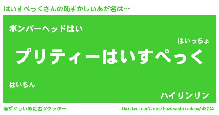 | 欧米人風あだ名 | 『トリンドルはいすぺっく』 |