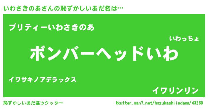 | ヘコむあだ名 | 『いわにー』『いわお』『豆乳』 |