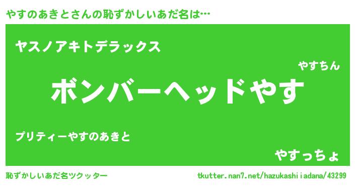 | ヘコむあだ名 | 『レバニラ』『やすのあきと(苦笑)』 |
