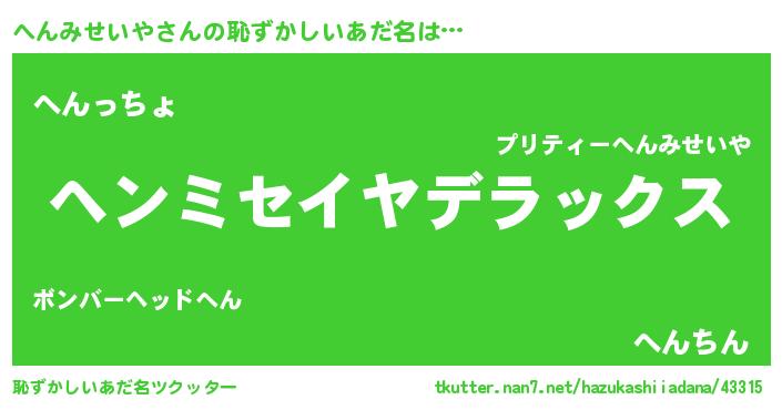 | 意味不明あだ名 | 『自称へんみせいや』 |
