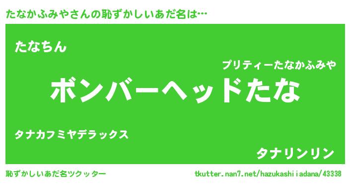 | 男性向けラノベタイトル風あだ名 | 『おまえをオタクにしてやるから、俺をたなかふみやにしてくれ! 』 |