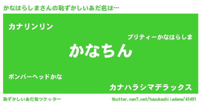 | ヘコむあだ名 | 『かなはらしま(遠い目)』『かな太郎』 |