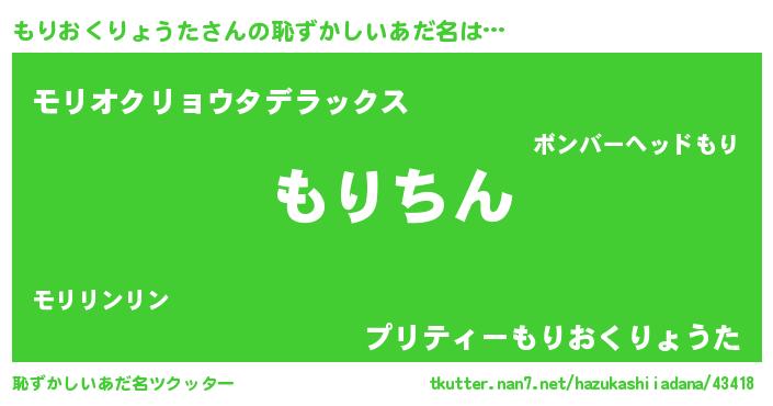 | ヘコむあだ名 | 『もりおくりょうた(笑)』『もりふぇ~』 |