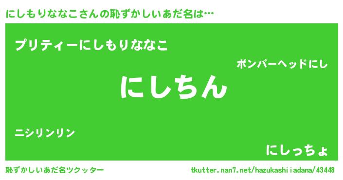 | 可愛いあだ名 | 『ぽよにし』『にしもりななこママ』 |