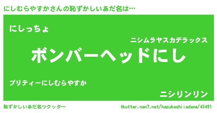 | 料理風あだ名 | 『にしむらやすかとほうれんそうの和風グラタン』 |