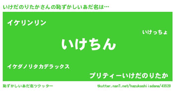 | 可愛いあだ名 | 『いけだのりたかママ』『いっけぃー』 |