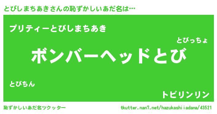 | ヘコむあだ名 | 『とびにゅー』『とびっぺ』 |