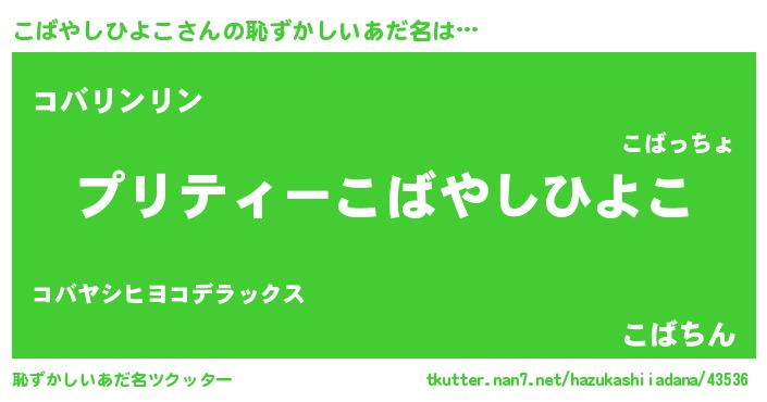 | ポケモン風あだ名 | 『コバチュウ』『ヒコバヤシヒヨコ』 |