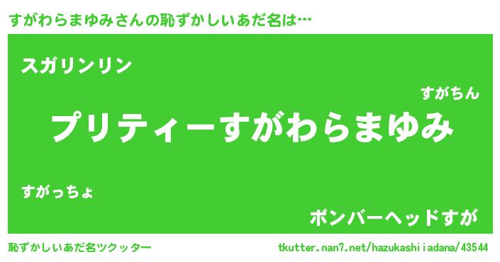 | 伝説のあだ名 | 『伝説のスナイパーすがわらまゆみ』 |