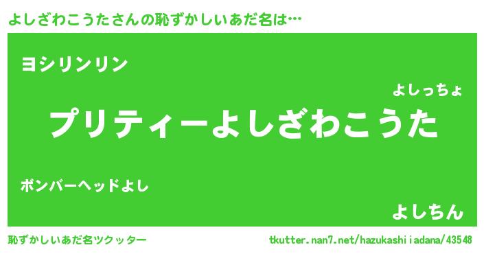 | ヘコむあだ名 | 『よしにー』『よしぷりん』『つくし』 |