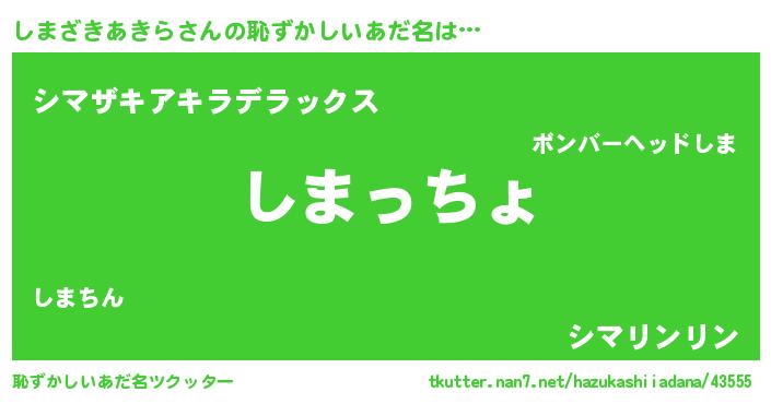 | 男性向けラノベタイトル風あだ名 | 『シマザキアキラスレイヤー』 |