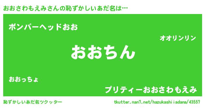 | ヘコむあだ名 | 『おおさわもえみ(震え声)』『おおっふぃ~』 |