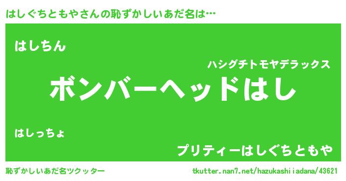 | ヘコむあだ名 | 『はしぐちともや(笑)』『はしにゅー』 |