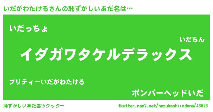 | 意味不明あだ名 | 『住所不定無職いだがわたける(59歳)』 |
