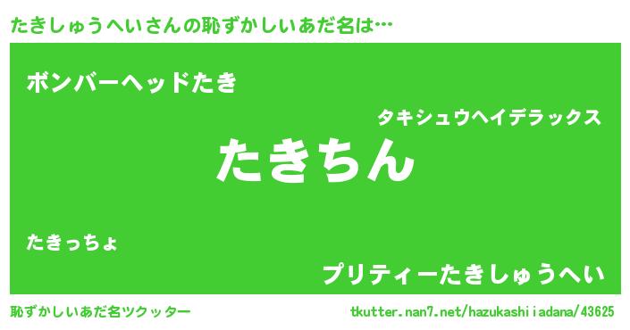 | 意味不明あだ名 | 『永久保存たきしゅうへい』 |