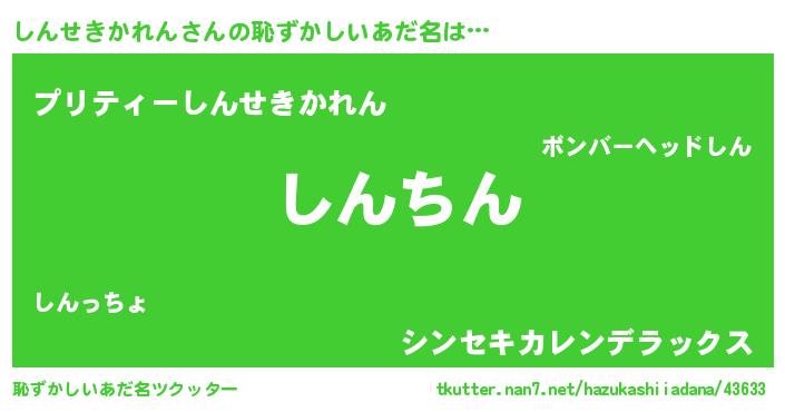 | ヘコむあだ名 | 『しんせきかれん(笑)』『しんふぇ~』 |