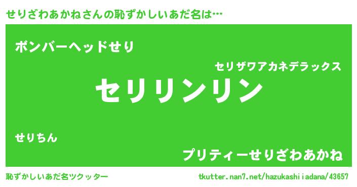 | 男性向けラノベタイトル風あだ名 | 『せりざわあかねの嫁は女の子じゃないと思った?』 |