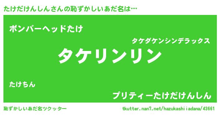 | ポケモン風あだ名 | 『ヒタケダケンシン』『タケゴンZ』 |