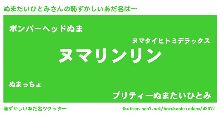 | 意味不明あだ名 | 『住所不定無職ぬまたいひとみ(40歳)』 |