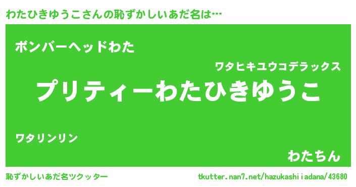 | ヘコむあだ名 | 『わたにー』『わたひきゆうこ(震え声)』 |