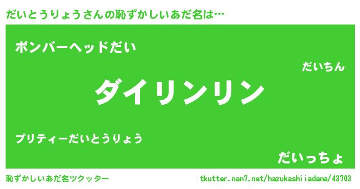 | ヘコむあだ名 | 『だいっぺ』『なまこ酢』『だいにー』 |