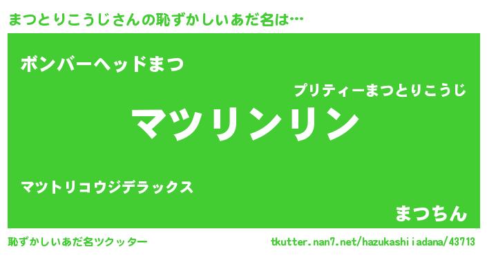 | 意味不明あだ名 | 『とにかく怪しいまつとりこうじ』 |