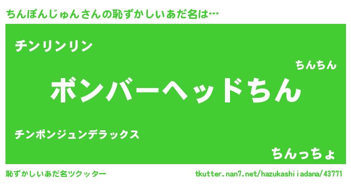 | ヒーロー風カッコイイあだ名 | 『慈愛の使者ちんぽんじゅん』 |