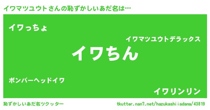 | ヒーロー風カッコイイあだ名 | 『ネオイワマツユウト』『魔戒騎士イワ』 |