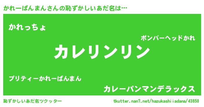 | 意味不明あだ名 | 『とにかく怪しいかれーぱんまん』 |