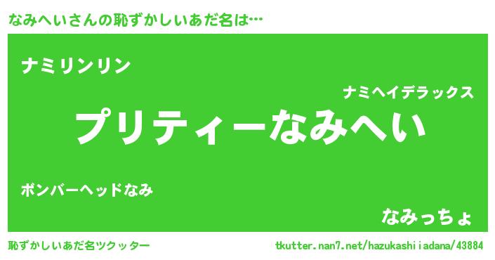 | ヒーロー風カッコイイあだ名 | 『仮面ナミダー』『スーパーナミヘイ』 |