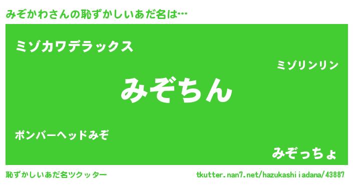 | ヒーロー風カッコイイあだ名 | 『仮面ミゾダー』『ネオミゾカワ』 |