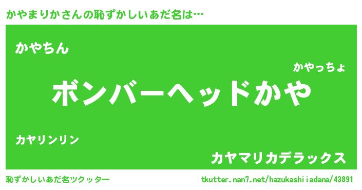| ヒーロー風カッコイイあだ名 | 『慈愛の使者かやまりか』『仮面カヤダー』 |