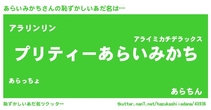 | 胡散臭い通販商品みたいなあだ名 | 『必ず成功する霊験あらたかなお札…その名も「あらいみかち」』 |