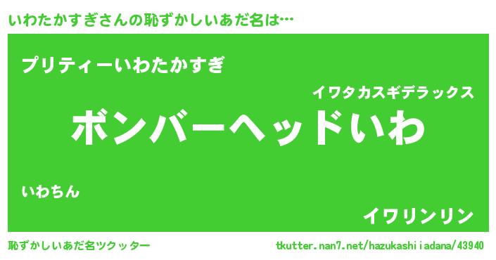 | 男性向けラノベタイトル風あだ名 | 『ノーゲーム・ノーイワタカスギ』 |