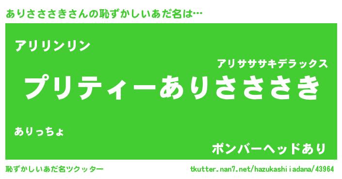 | ヒーロー風カッコイイあだ名 | 『スーパーアリサササキ』『仮面アリダー』 |
