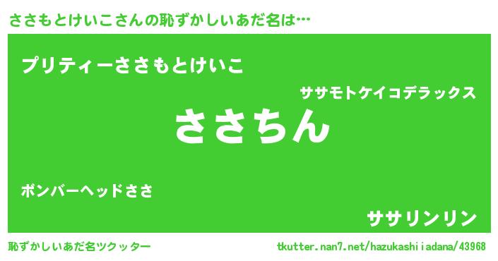 | 意味不明あだ名 | 『永久保存ささもとけいこ』 |