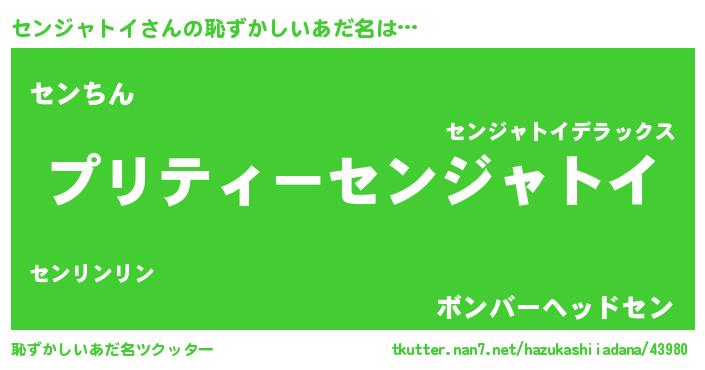 | 男性向けラノベタイトル風あだ名 | 『センジャトイに滅ぼされるだけの簡単なお仕事です』 |