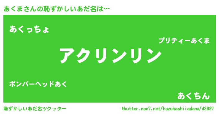 | ヘコむあだ名 | 『あくっぺ』『牛乳』『あくにー』 |