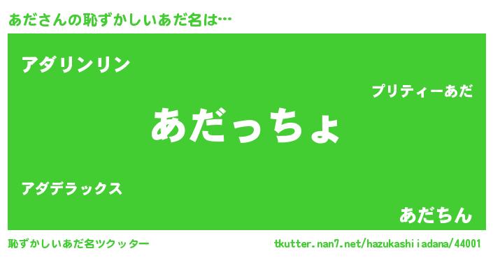 | ポケモン風あだ名 | 『アダダネ』『ヒアダ』『ゼニアダ』 |