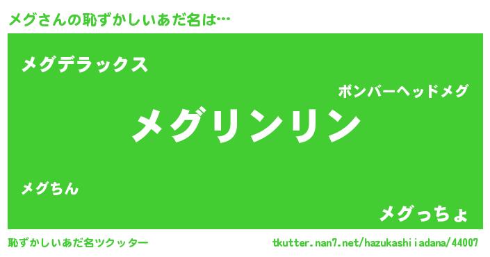 | 意味不明あだ名 | 『とにかく怪しいメグ』『自称メグ』 |