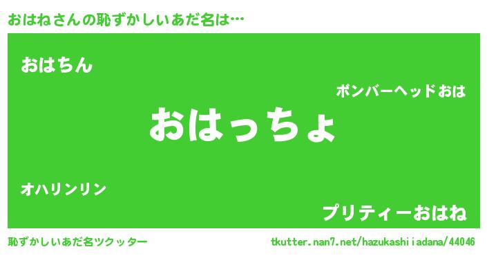 | ヒーロー風カッコイイあだ名 | 『仮面オハダー』『ウルトラおはねマン』 |