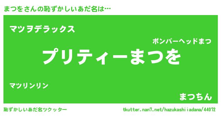 | 男性向けラノベタイトル風あだ名 | 『この素晴らしい世界にまつをを!』 |