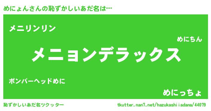 | ヒーロー風カッコイイあだ名 | 『サイバー戦士メニョン』『魔戒騎士メニ』 |