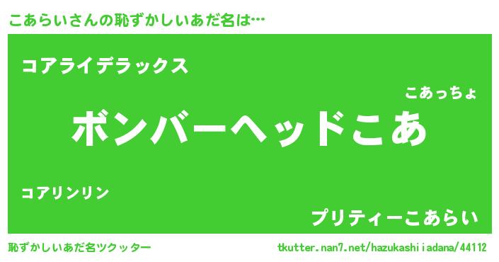 | ヘコむあだ名 | 『こあにー』『つくし』『こあっぺ』 |