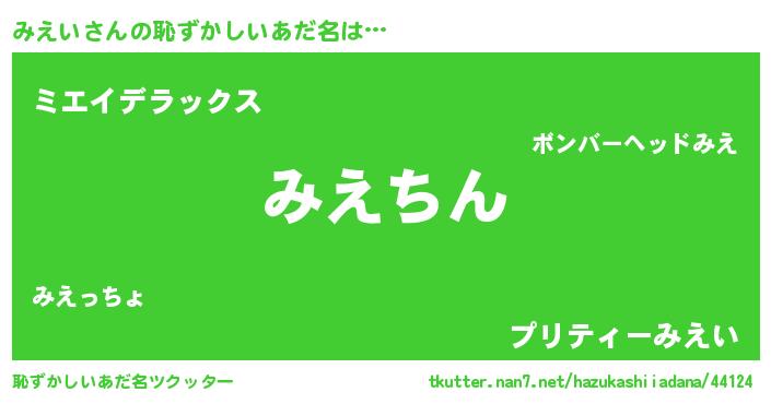 | 意味不明あだ名 | 『永久保存みえい』『自称みえい』 |